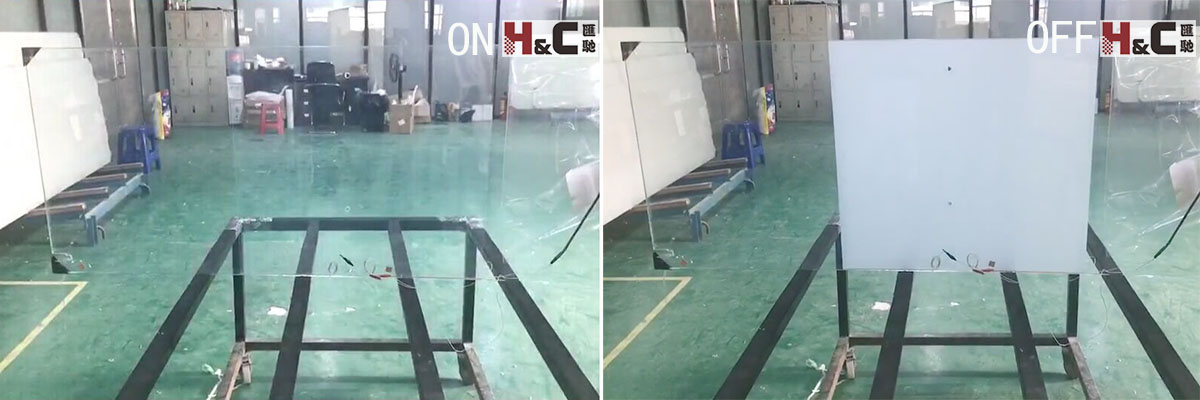 注:我公司生產的調光玻璃,指的是用兩層鋼化玻璃夾一層PDLC調光膜,經高溫高壓工藝膠合一體成型的安全夾層玻璃。