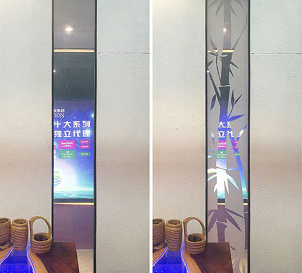 輕按遙控,即可輕松控制玻璃的透明或霧化狀態,操作簡單方便。玻璃透明時,能讓原本狹小的空間更加寬敞明亮;玻璃霧化時,能隔斷空間,很好地保護個人隱私,真正實現室內隔斷“隔而不斷”的空間設計理念。