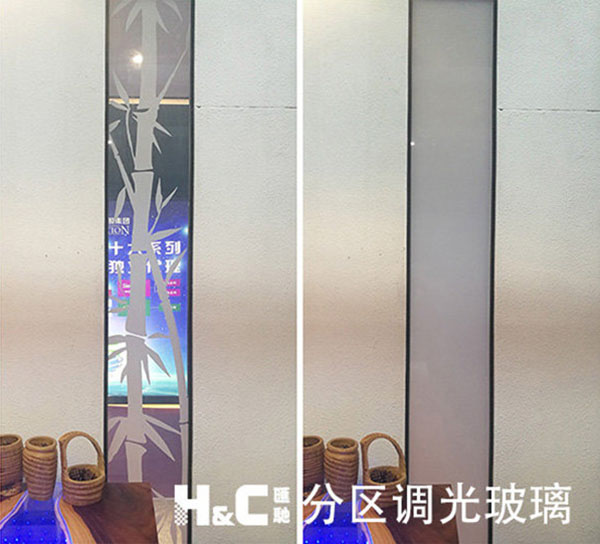 匯馳公司可以定制分區型圖文調光玻璃,即玻璃上可以呈現出各種圖形、文字的變化效果,可固定呈現,也可動態呈現,用遙控就能輕松控制。只有調光膜生產廠家,才有能力生產分區型調光玻璃。